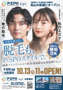 このたび P・SPO epi (脱毛)の3号店が10月13日(金) 11時~